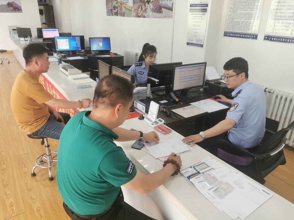 民警为企业办理车辆使用性质变更手续(受访者供图)