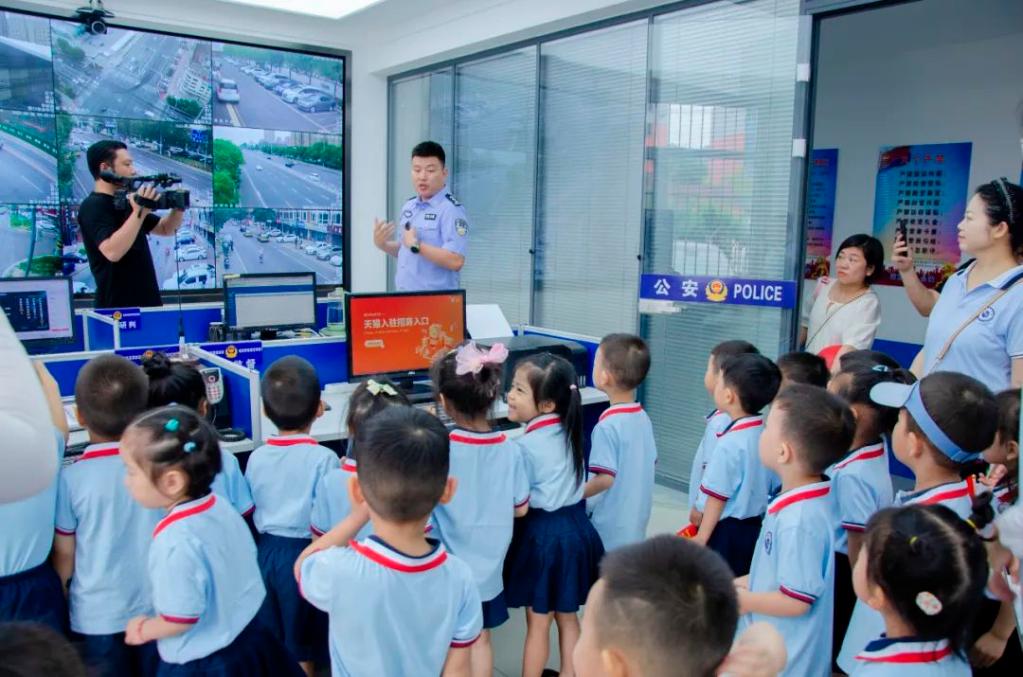 在派出所综合指挥室,民警为孩子们生动地介绍了110接处警的全过程,让孩子们亲身了解了派出所的日常工作。