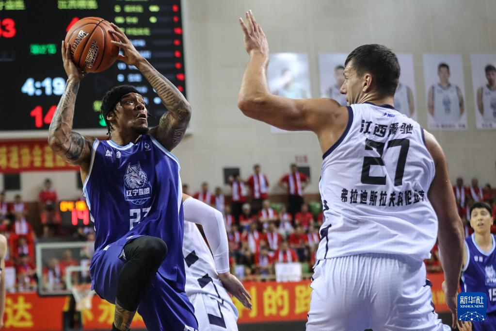 7月9日,江西赣驰队球员加里纳特(左)在比赛中上篮。新华社记者 潘昱龙 摄pagebreak
