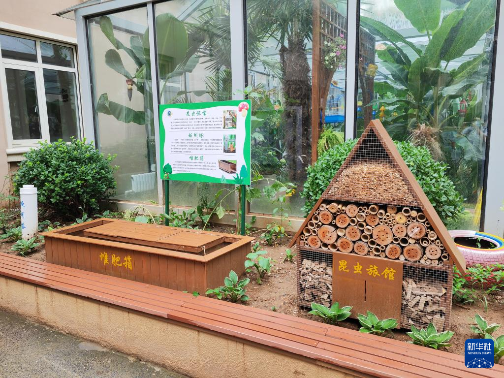 大连市甘井子区实验小学“识嫣园”里的堆肥箱。新华社记者张博群 摄