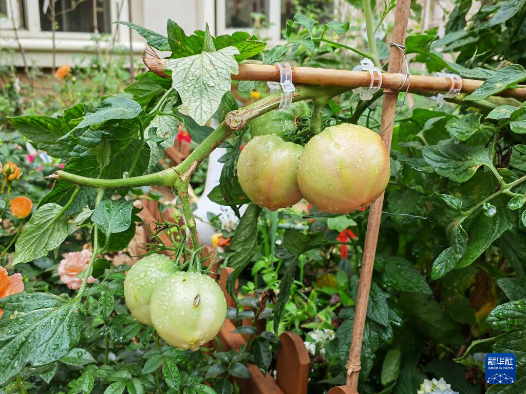 大连市甘井子区实验小学“识嫣园”里种植的西红柿。新华社记者张博群 摄