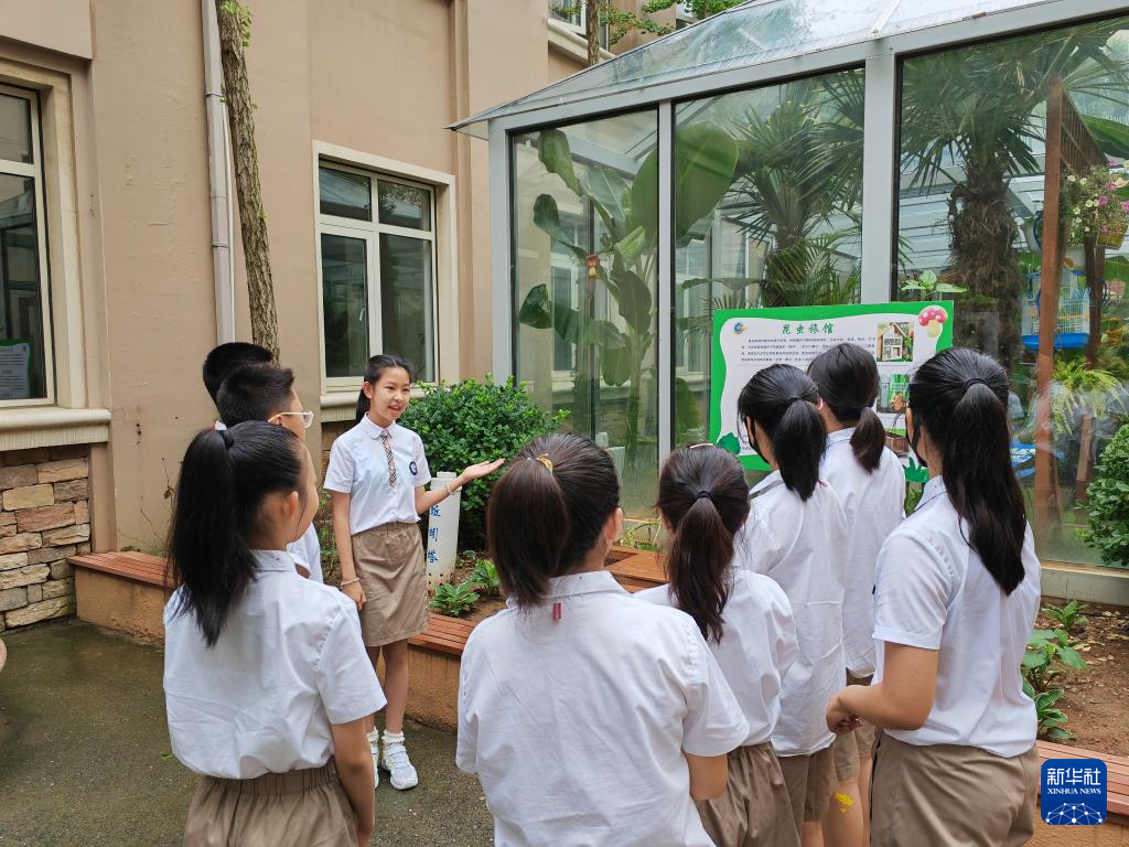 大连市甘井子区实验小学学生在“识嫣园”进行实践学习。新华社记者张博群 摄