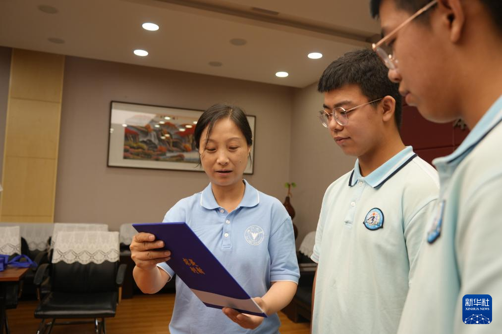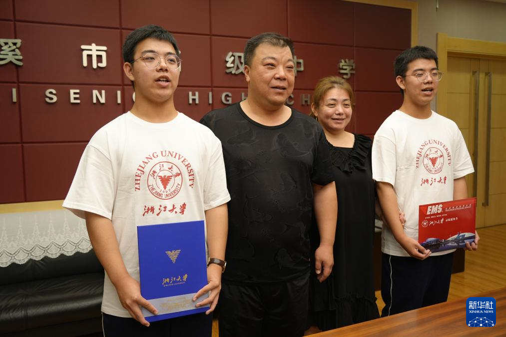 浙江大学将录取通知书送到了双胞胎兄弟手中。新华社记者武江民摄
