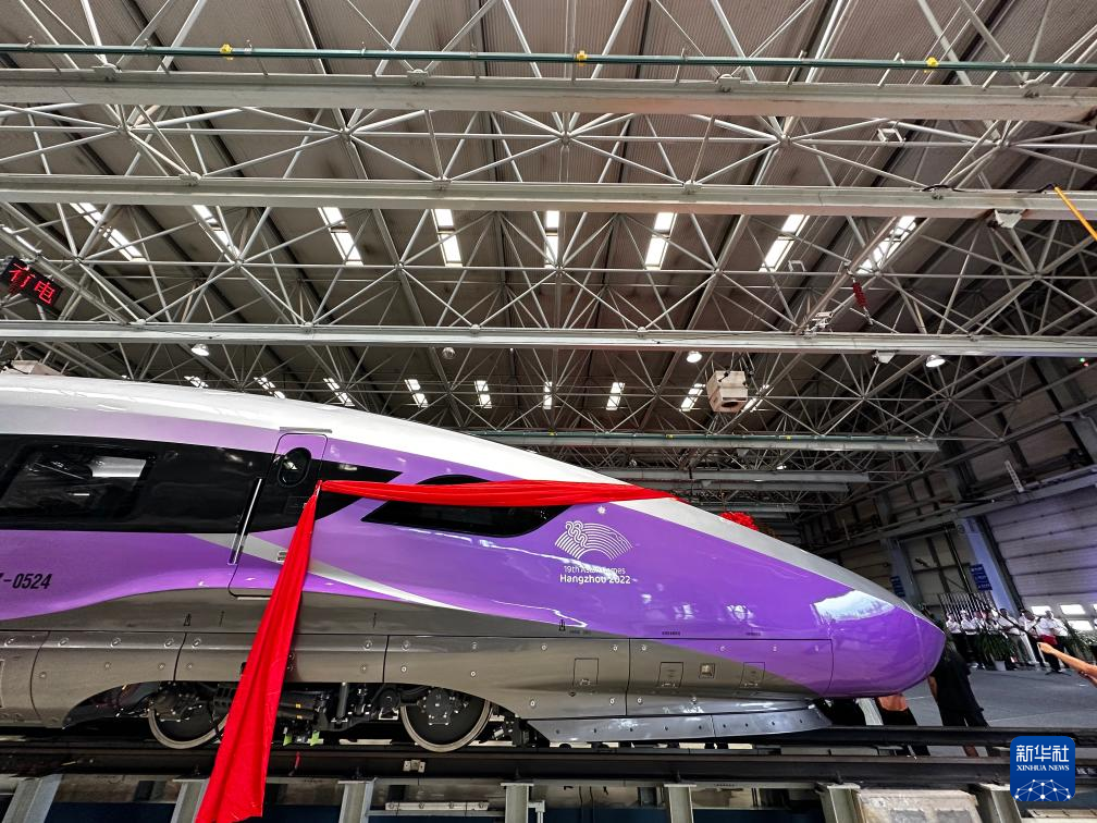 这是7月21日拍摄的复兴号亚运智能动车组外观。当日,复兴号亚运智能动车组在位于吉林长春的中车长春轨道客车股份有限公司正式下线。新华社记者 马晓成 摄