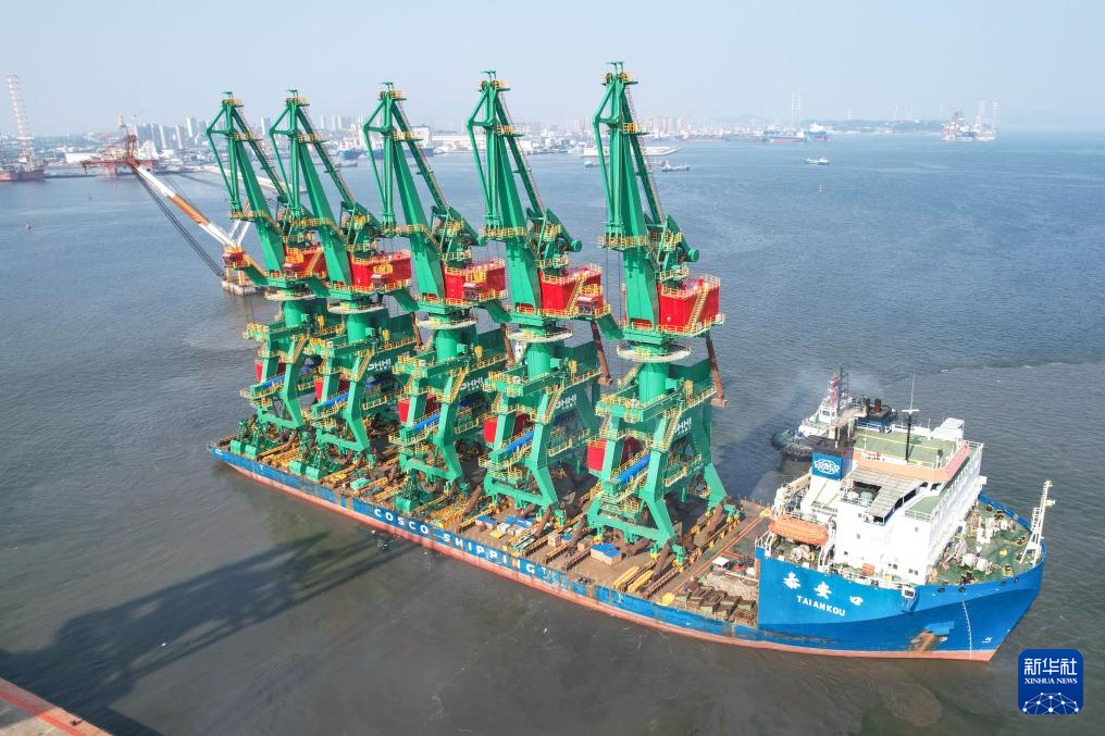 7月20日,大连重工装备集团出口印尼的五台大型门座顺利发运。新华社发