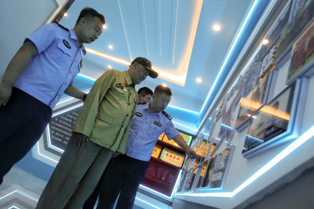 辽宁丹东边境管理支队商旅边境派出所民警向志愿军老战士介绍单位的职责使命。(辽宁丹东边境管理支队供图)