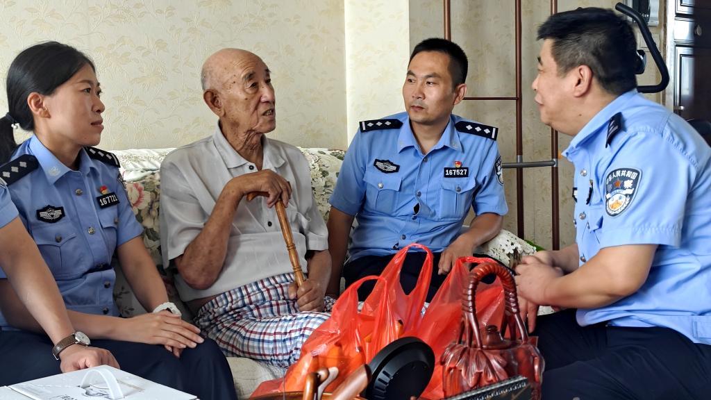 辽宁丹东边境管理支队鸭绿江边境派出所民警到志愿军老战士家走访慰问。(辽宁丹东边境管理支队供图)