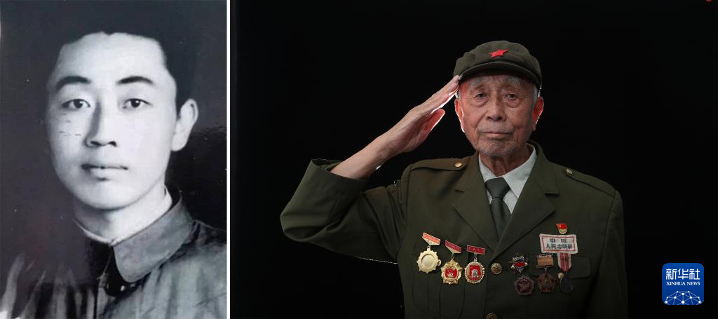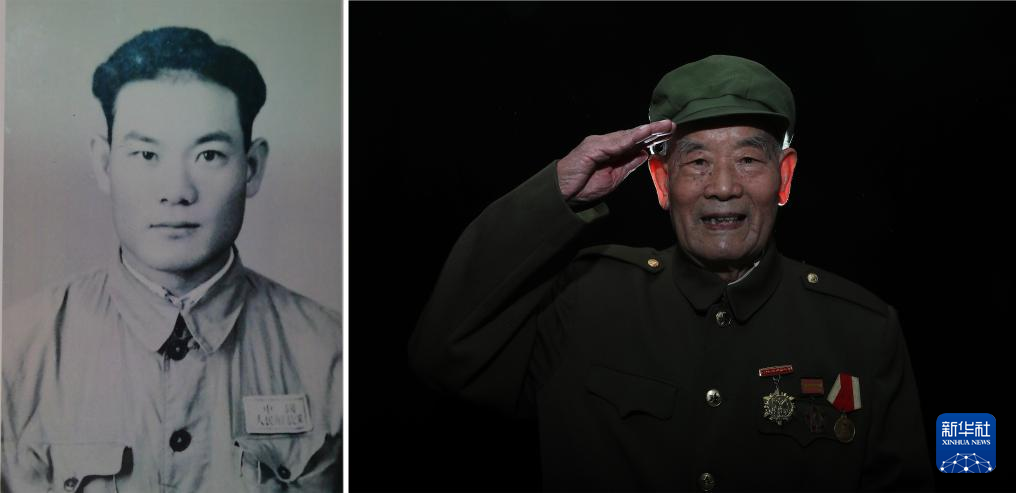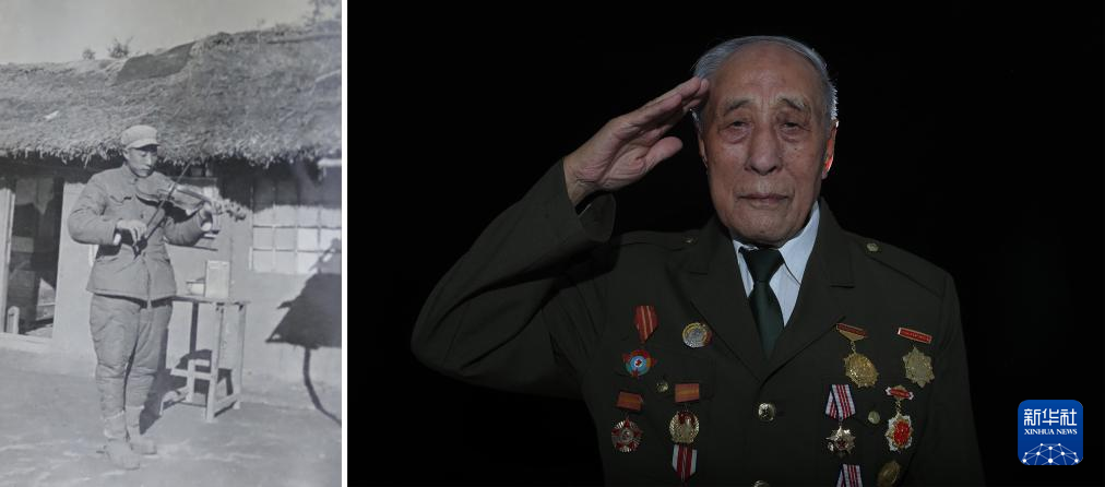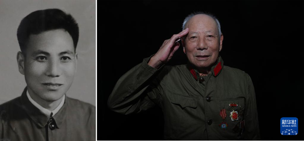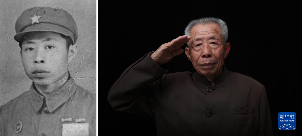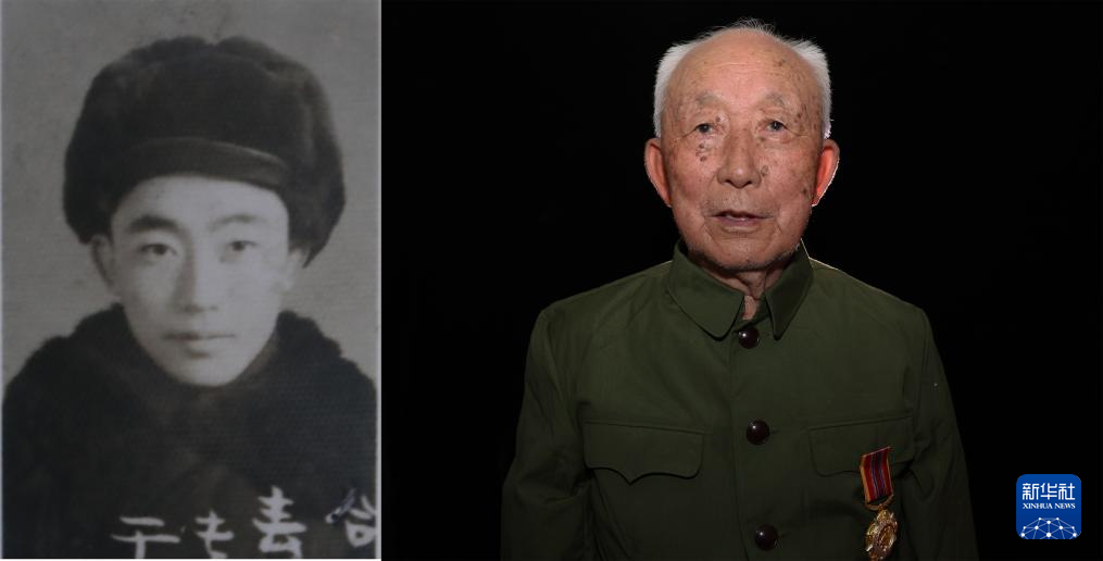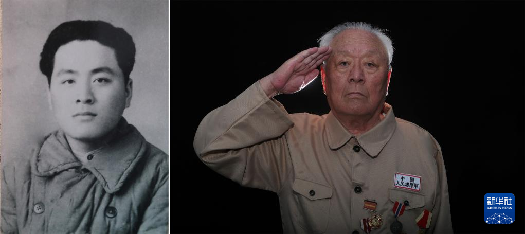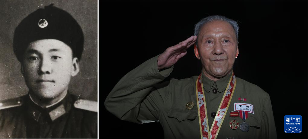 项凤玉(拼版照片,2023年7月4日摄),1933年出生,1951年3月入伍,当年8月入朝,任炮8师48团后勤处通信员。