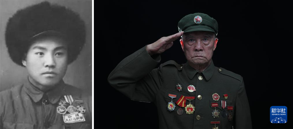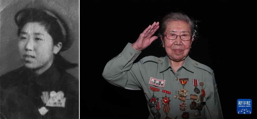 吴晓岚(拼版照片,2020年9月9日摄),1934年出生于吉林省磐石县黑石镇。1948年2月参加革命工作,历经辽沈战役、平津战役和抗美援朝战争,历任护士、护士班长。