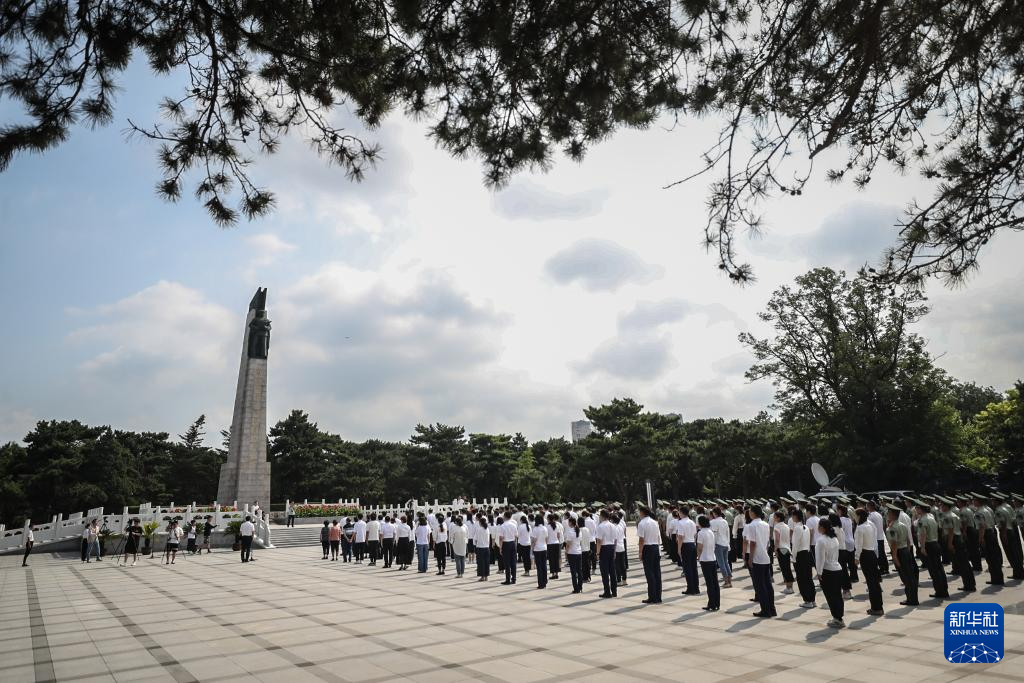 7月27日,沈阳抗美援朝烈士陵园举行祭英烈活动。社会各界人士向烈士纪念碑敬献花篮,缅怀在抗美援朝战争中牺牲的烈士。新华社记者 潘昱龙 摄
