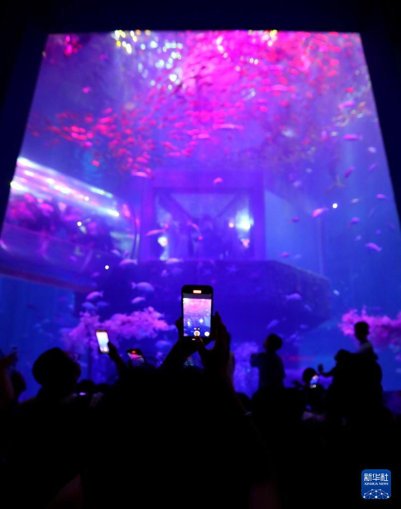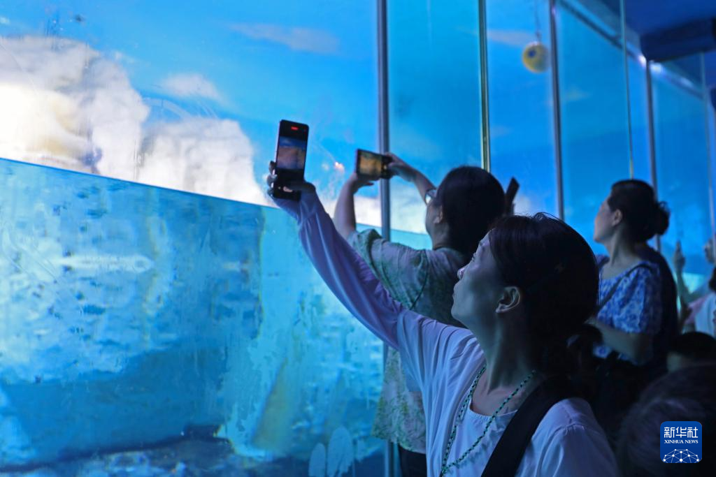 7月31日,游客在大连老虎滩海洋公园的极地馆内观赏海洋动物。新华社记者 陈为 摄pagebreak