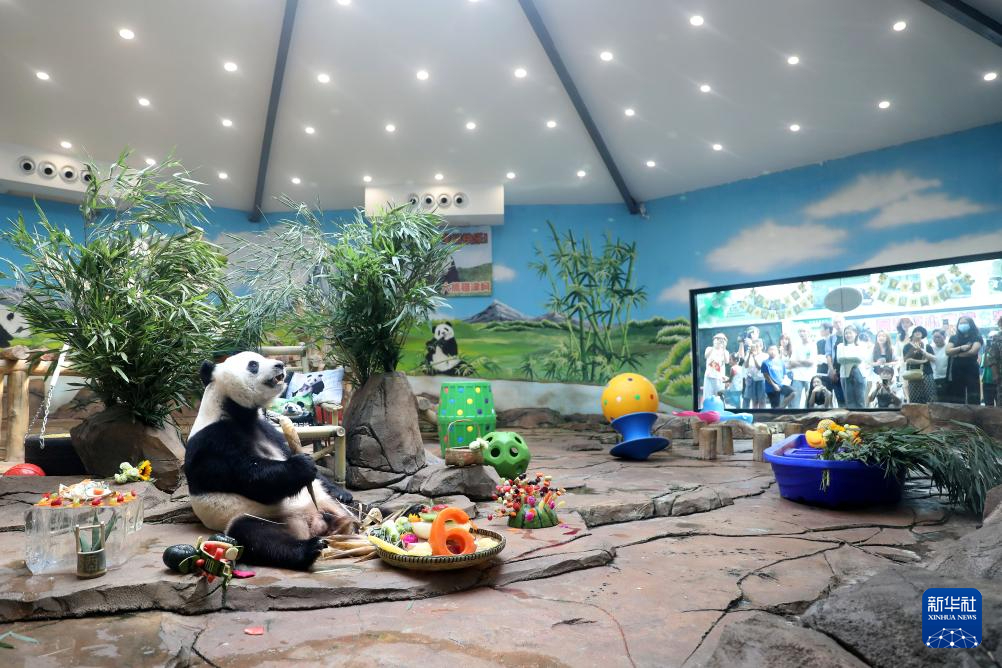 当日是大熊猫“刚刚”(小名“青城”)的6岁生日,鞍山动物园为它准备了特制的生日大餐,众多市民游客前来为它庆生。 大熊猫“刚刚”2017年出生于中国大熊猫保护研究中心雅安碧峰峡基地,于2020年5月21日来到鞍山动物园。pagebreak