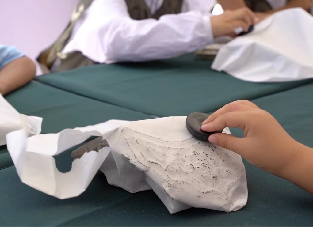 图为小学生在活动体验中。沈阳市文物考古研究所供图