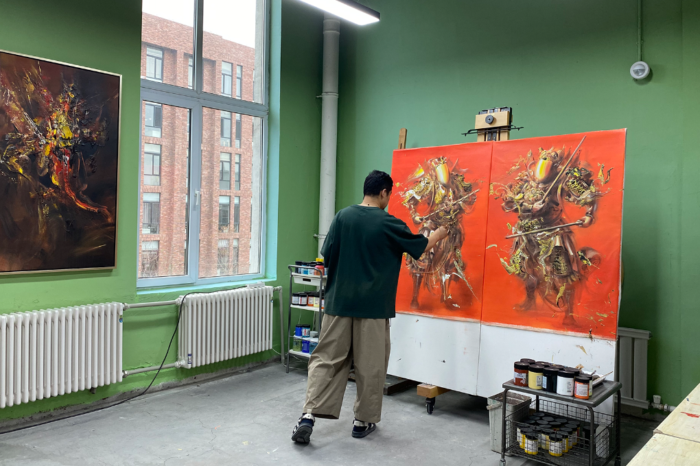 邓宇在红梅文创园艺术驻地中进行绘画创作。(受访者供图)