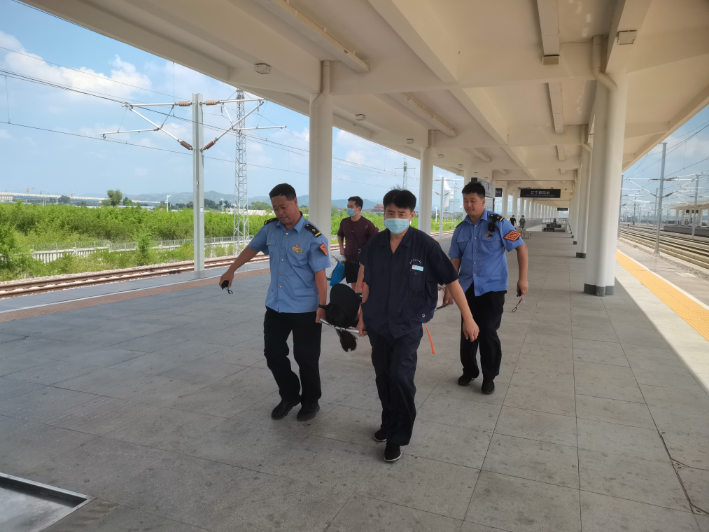 由于列车长已经拨打了120急救电话,车站必须在最短时间内完成急救车进站救人、运送至医院的组织工作。车站“小东951·凤鸣朝阳”服务团队立即组织人员,开启进站绿色通道,一场紧张的生命接力就此展开。
