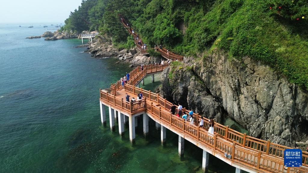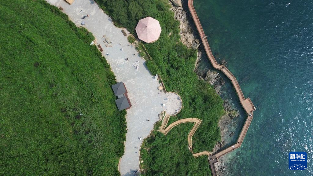 8月16日,游客在小长山岛小水口森林公园的旅游栈道游玩(无人机照片)。新华社记者 陈为 摄pagebreak