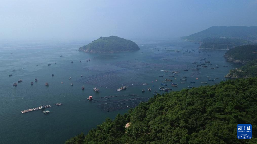 8月16日拍摄的小长山岛海洋养殖基地(无人机照片)。新华社记者 陈为 摄pagebreak
