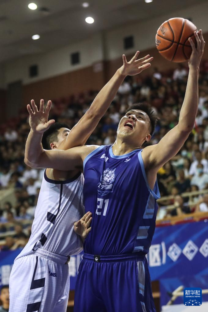 8月16日,辽宁益胜队球员刘子豪(右)在比赛中上篮。新华社记者 潘昱龙 摄pagebreak