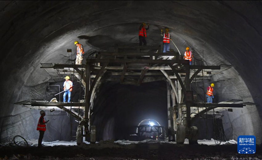 8月25日,中铁十九局施工人员在沈白高铁新宾隧道内施工。新华社记者 杨青 摄