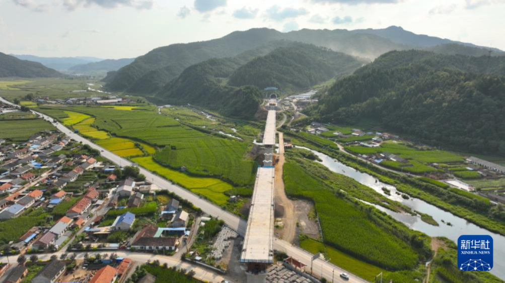 8月25日拍摄的沈白高铁新宾隧道出口(无人机照片)。新华社记者 杨青 摄pagebreak