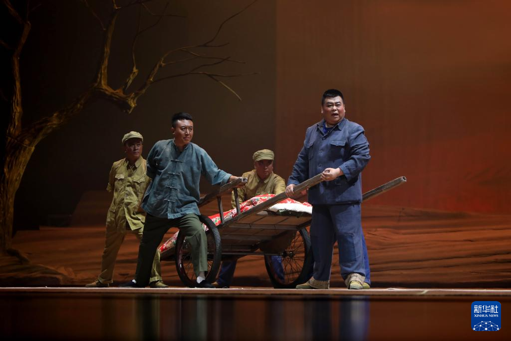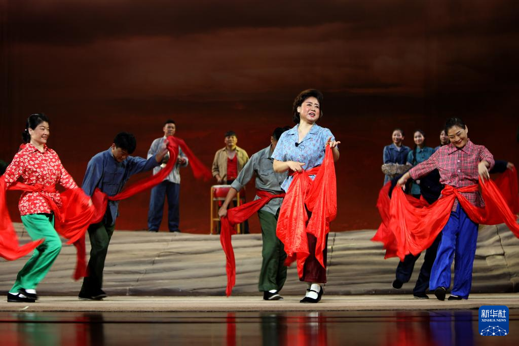 8月29日,演员在现代评剧《沙海情》中表演。新华社记者 陈为 摄