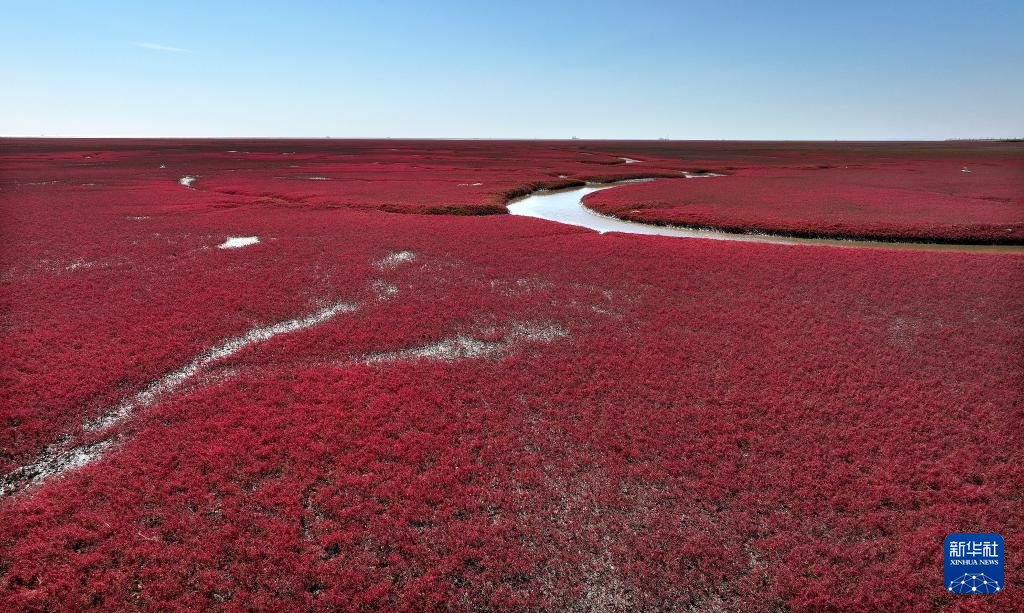 近日,辽宁省盘锦红海滩国家风景廊道内的碱蓬草迎来最佳观赏期,吸引了众多游客前来观赏游玩。pagebreak