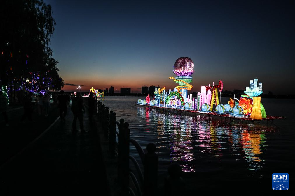 草雕乐园里,孩子们围在憨态可掬的“斑海豹”旁,等待合影留念;辽河水面上搭起的“醉美鹤乡”“盘锦河蟹”灯组形态逼真,与星空交相辉映……多个主题灯展,向游客们介绍辽河的生态之变、生态之美。