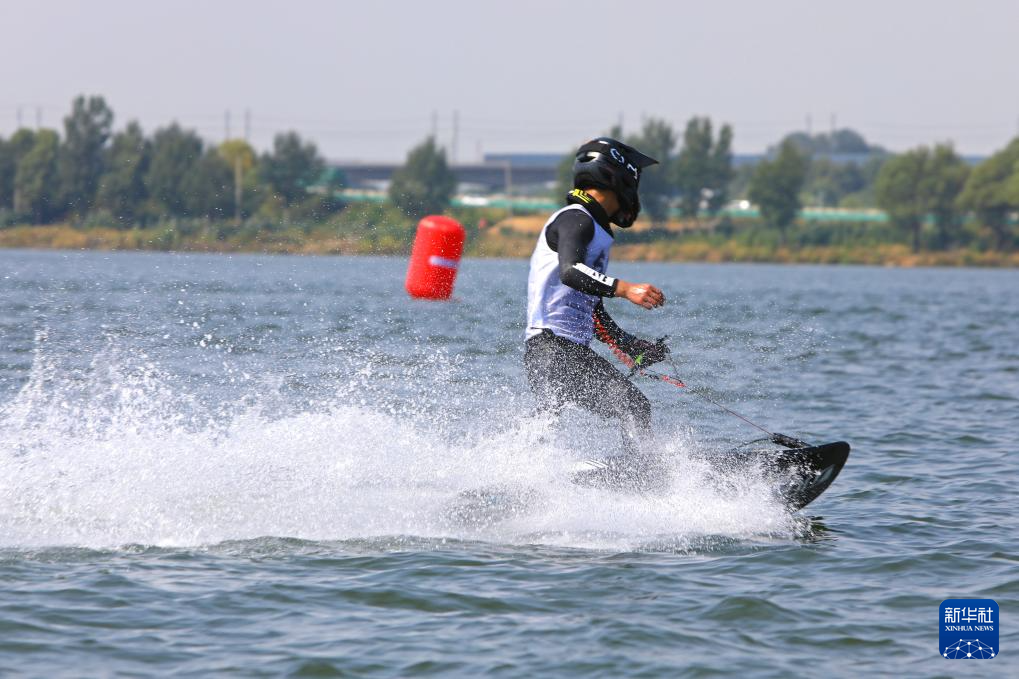 9月16日,参赛选手在专业组公开级:男子动力冲浪板环圈竞速赛比赛中。新华社记者 陈为 摄