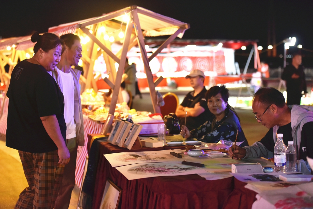 启动仪式现场设置了“芦花时节”盘锦特色非遗文创展,向游客推出“豹有趣儿”“非遗盲盒”等热销文创品,刘家果子、侯氏艾蒿等非遗工艺品琳琅满目,吸引现场观众目光。烟花秀、水舞秀、草雕艺术节、美食节、烧烤露营节、儿童娱乐等多项主题活动点燃了群众热情。