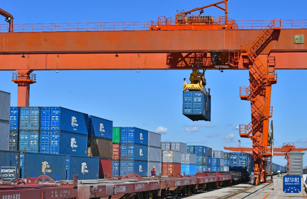 9月19日,在中欧班列(沈阳)集结中心,中国铁路沈阳局集团有限公司工作人员进行中欧班列装车作业。新华社记者 杨青摄