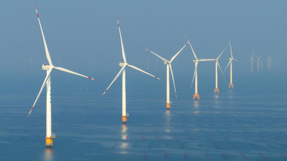 距离大连庄河市海岸线20多公里的黄海海域,300多座高约百米的“大风车”耸立在蓝天碧海间,巨大的风电机组叶片不停转动。庄河市发展和改革局副局长吴静说:“目前,庄河已有4个海上风电项目并网运行,年发电量可达27.3亿度。”