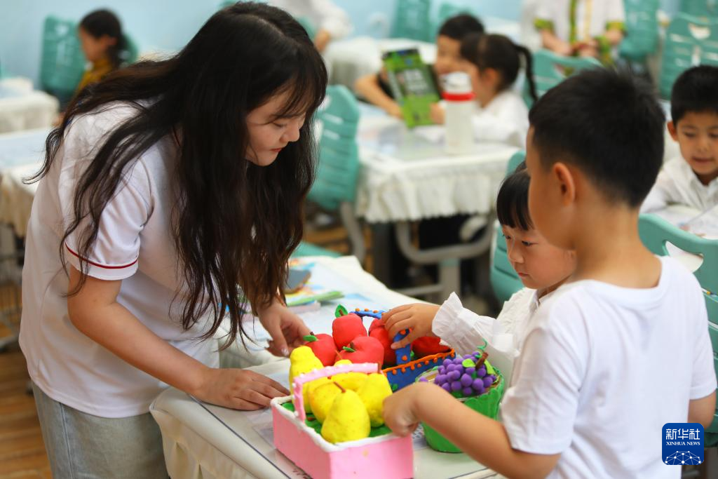 9月22日,孩子们在老师的带领下制作以丰收节为主题的手工作品。新华社记者 陈为 摄pagebreak