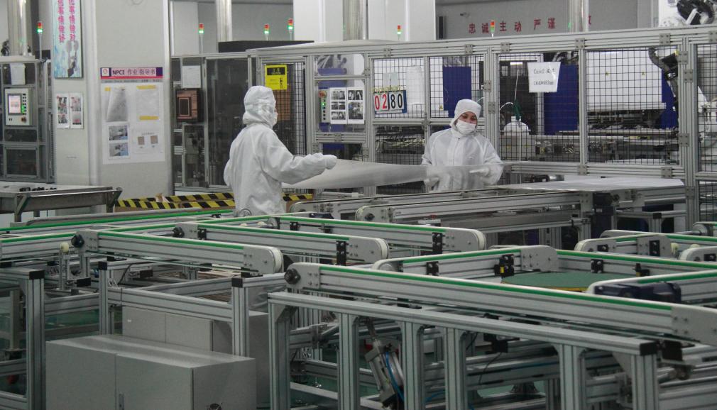 在锦州阳光能源有限公司生产车间,工人正在紧张而有序地忙碌着。(锦州市委宣传部供图)