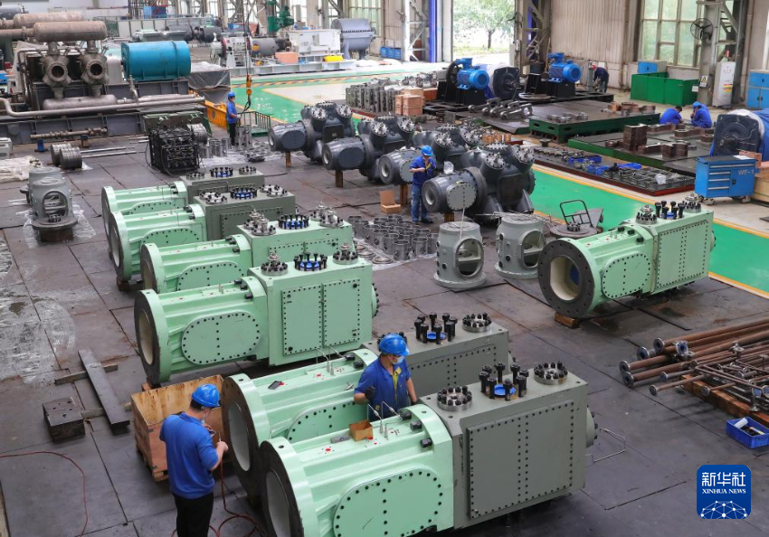 2022年6月13日,在沈鼓集团,工人在车间工作。新华社记者 杨青 摄
