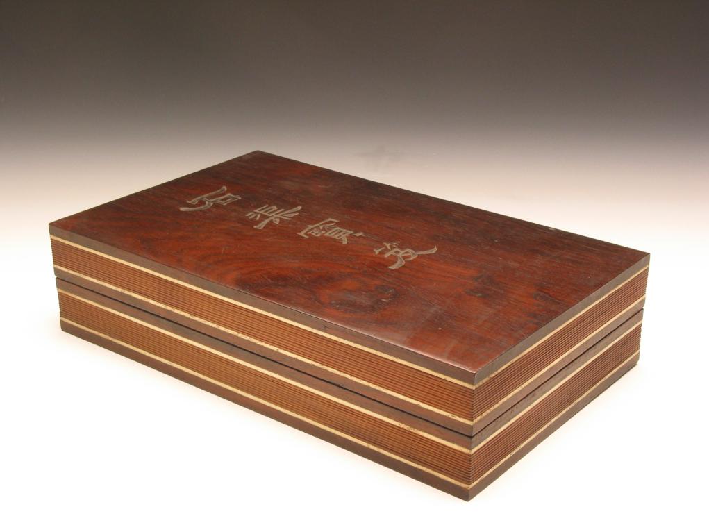 李晓丽说,清宫盛装诗文书画、文玩清供的装具,在装饰手法和装饰图案等方面具有典型的宫廷风格和鲜明的时代特征。此类装具以紫檀、漆器、竹根雕刻所制的盒、匣居多,且内部常设檀香木屉,以防潮、防虫蛀。镶嵌、镂空、雕花等制作工艺的使用,更凸显诗文书画、文玩清供类装具的古朴典雅。