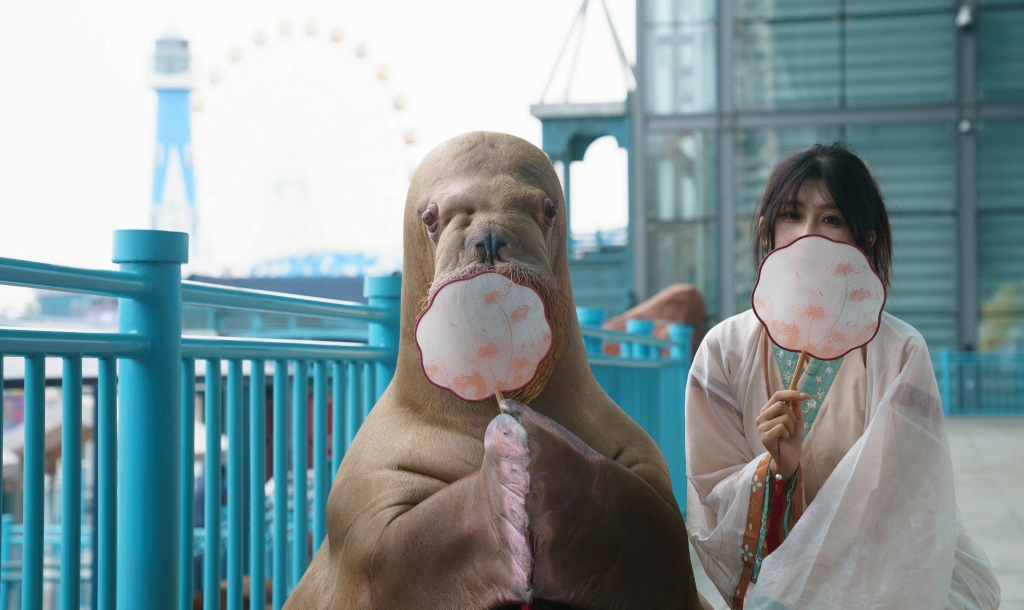 圣亚海洋世界里功夫海象上演逗趣的“中国舞秀”(受访者供图)