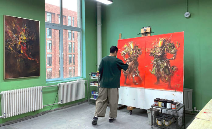 红梅文创园老厂房中,画家邓宇参与红梅文创园艺术驻地计划进行驻地创作(受访者供图)