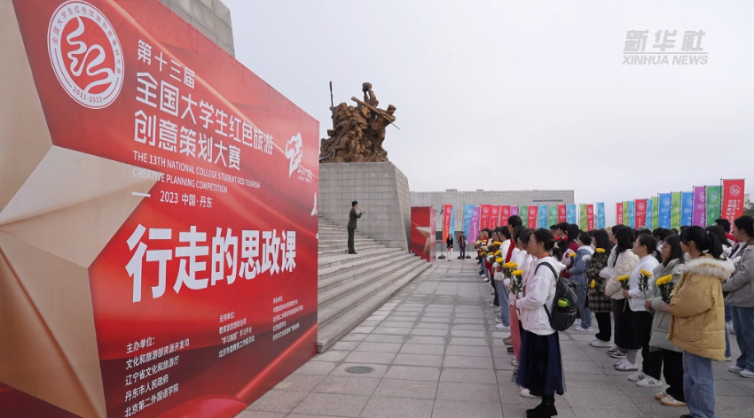 这堂思政课是第十三届全国大学生红色旅游创意策划大赛的环节之一。入围红旅大赛全国总决赛的60个团队、近200名师生齐聚抗美援朝纪念塔下,通过实地调研、聆听宣讲等形式,探访英雄城市,感悟红色精神。