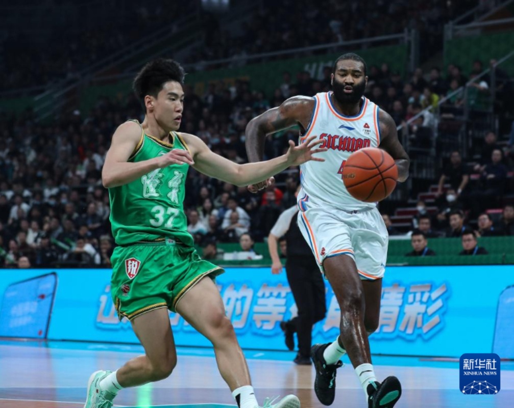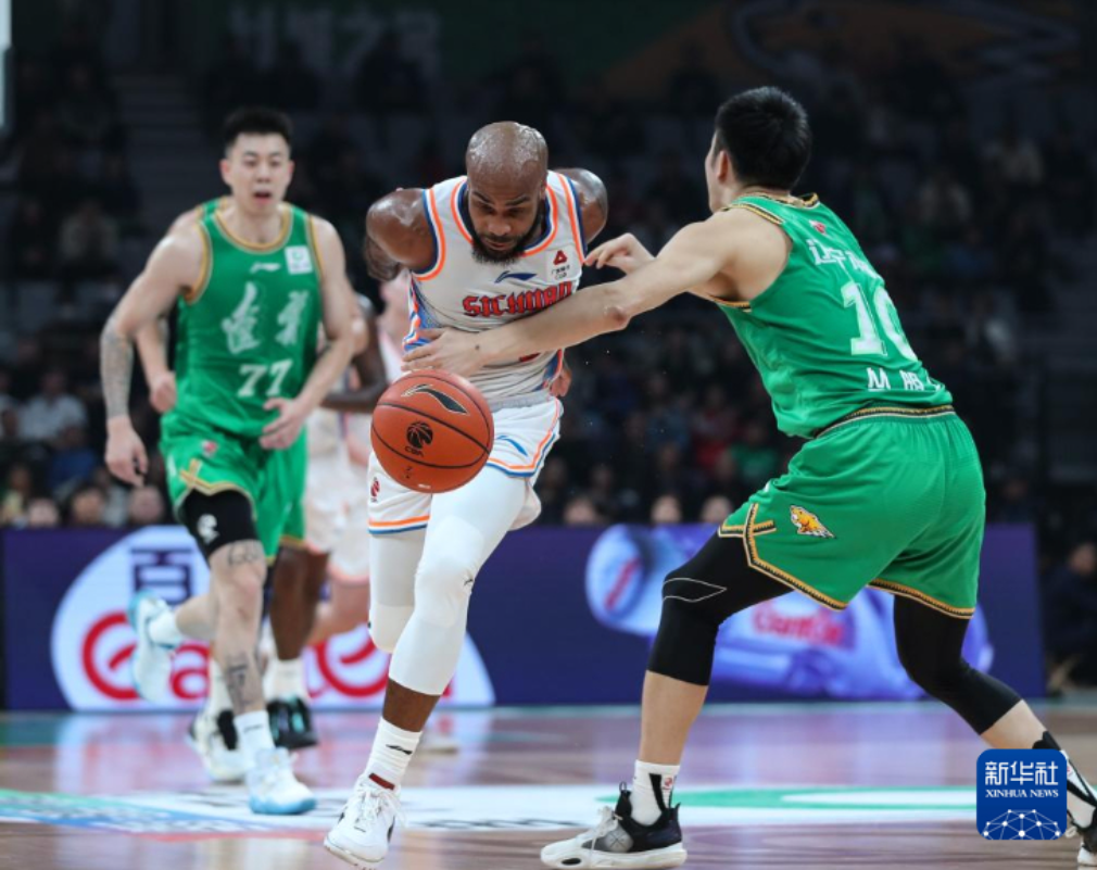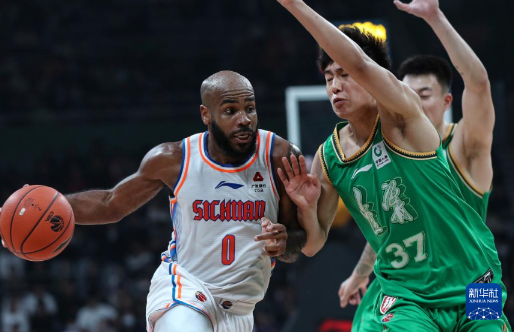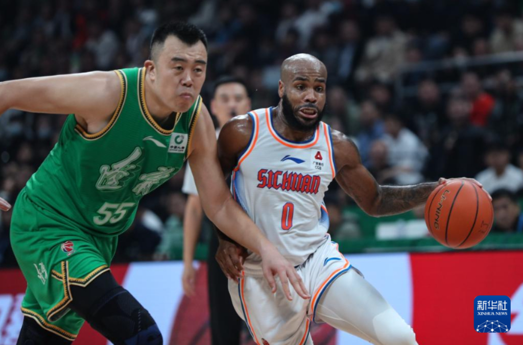 10月24日,四川金强队球员高登(右)在比赛中带球突破。新华社记者 龙雷 摄pagebreak
