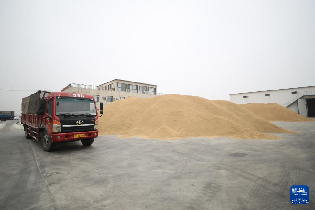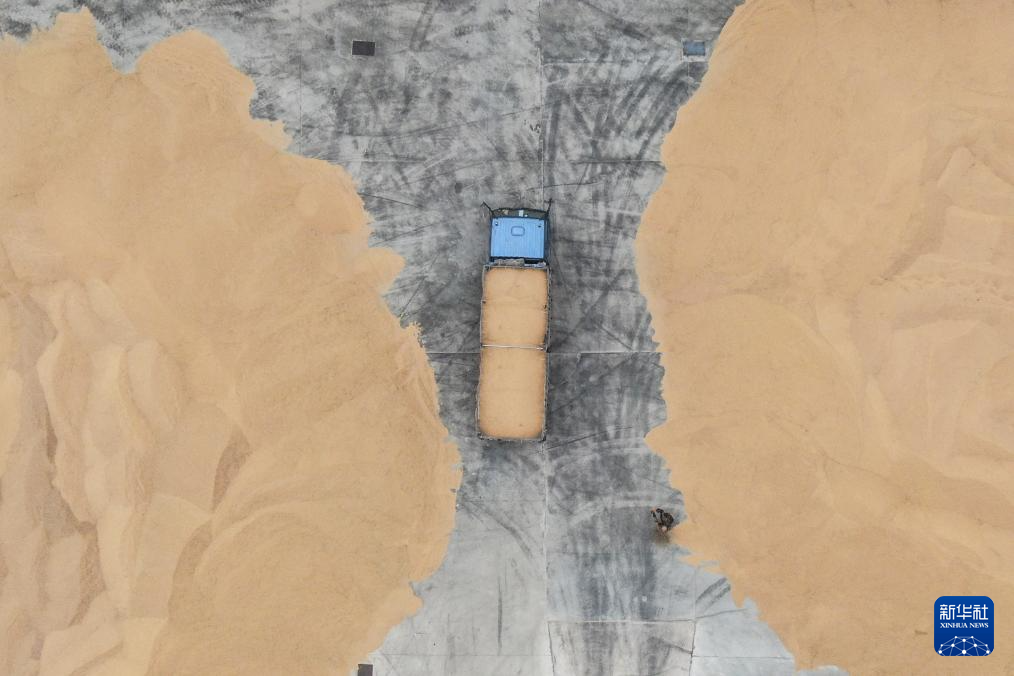 11月2日,农户将收获的稻谷送往盘锦市大洼区一家粮食加工企业(无人机照片)新华社记者 潘昱龙 摄