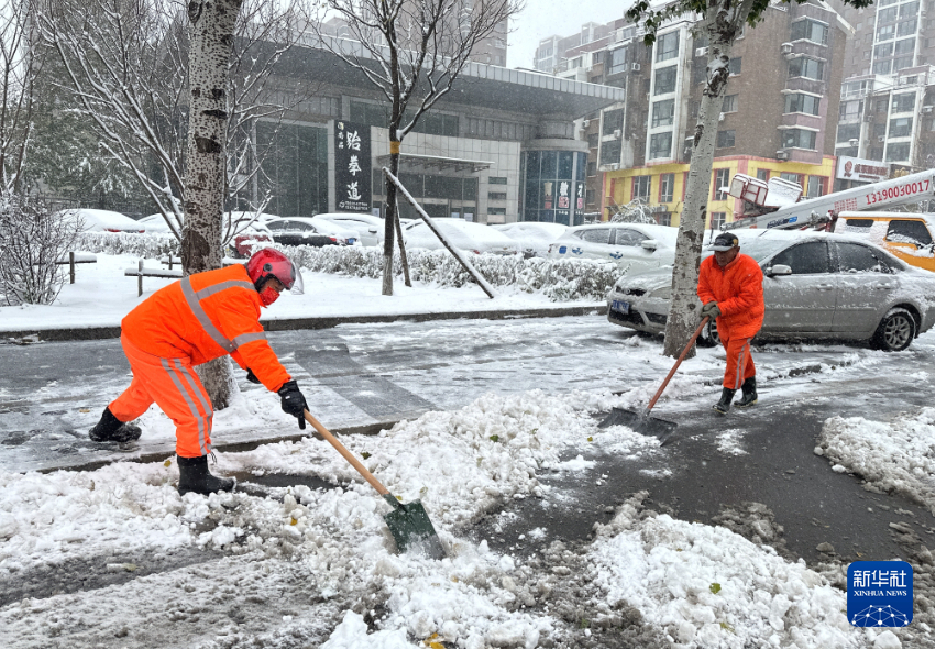 在沈阳市青年大街、沈营大街等主要街道,伴随着机器轰鸣声,除雪车辆卷起一团团雪浪。身着制服的环卫工人手拿工具,配合机器清雪。自5日下午开始,沈阳市2.2万名环卫工人、6293台机械设备全部进入待命状态。沈阳大东中环洁东站所专业化清扫三班班长闫洪生说:“积水夹杂着落叶,更易堵塞下水井口。我们沿街仔细清理一个个井口,同时做好除雪作业,保障市民和车辆出行便捷与安全。”