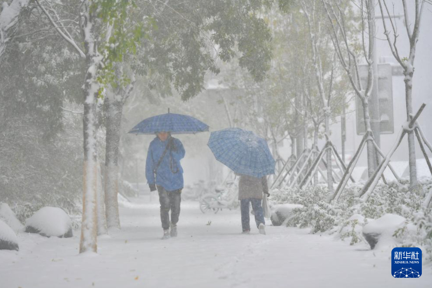 11月6日,在沈阳市浑南区,行人在雪中出行。 新华社记者杨青摄