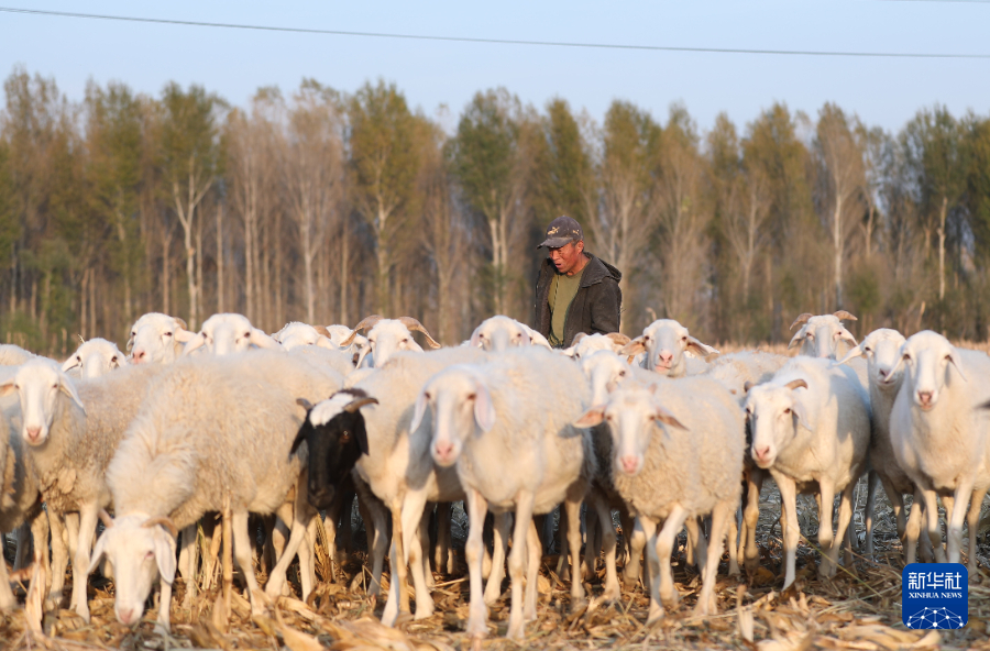 10月17日,官营子村村民在村中放羊。新华社记者龙雷摄