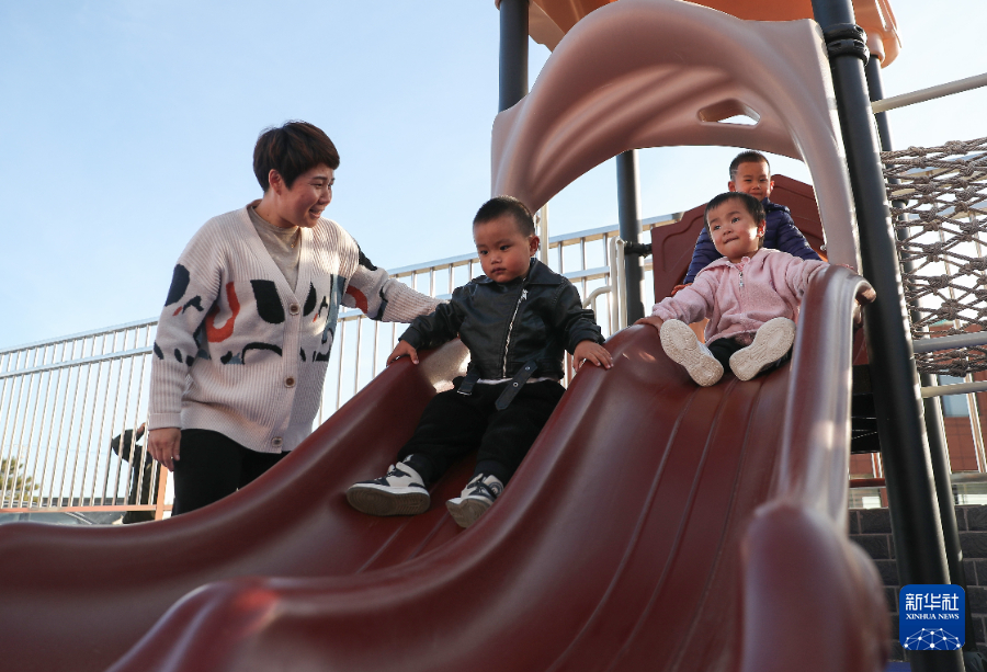 10月31日,小朋友在官营子村幼儿园玩滑梯。新华社记者龙雷摄pagebreak