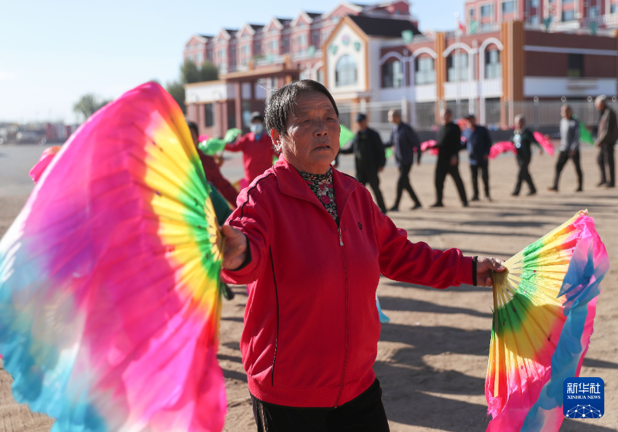 10月18日,居住在官营子村居家养老服务中心的老人在扭秧歌健身。新华社记者龙雷摄pagebreak
