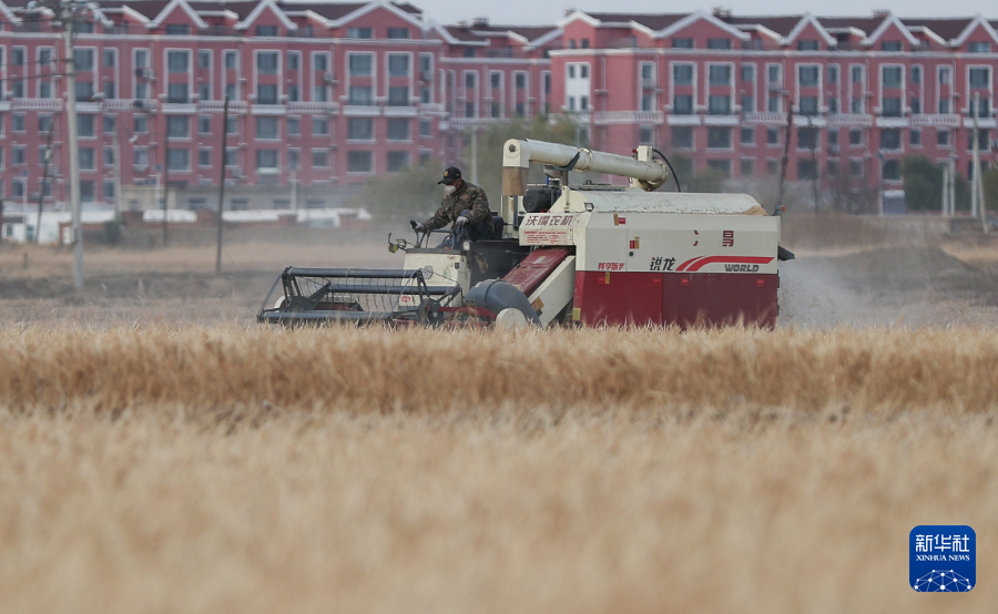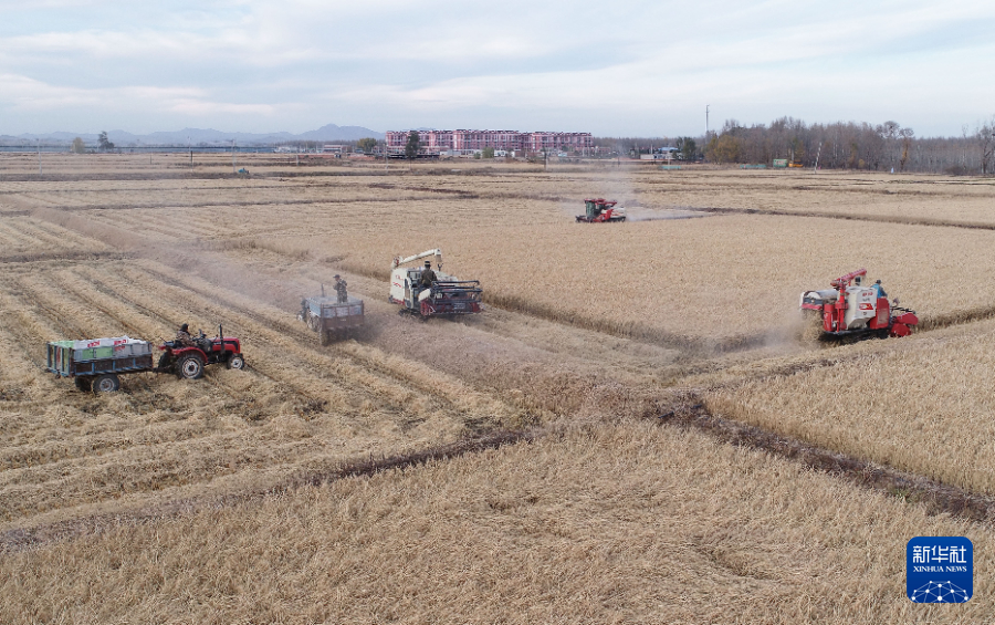 10月31日,水稻收割机在官营子村的稻田中作业。新华社记者龙雷摄pagebreak