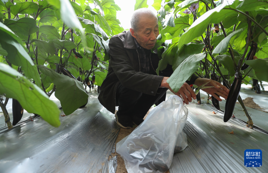 10月18日,居住在官营子村居家养老服务中心的老人在村中的蔬菜大棚中采摘蔬菜。新华社记者龙雷摄pagebreak