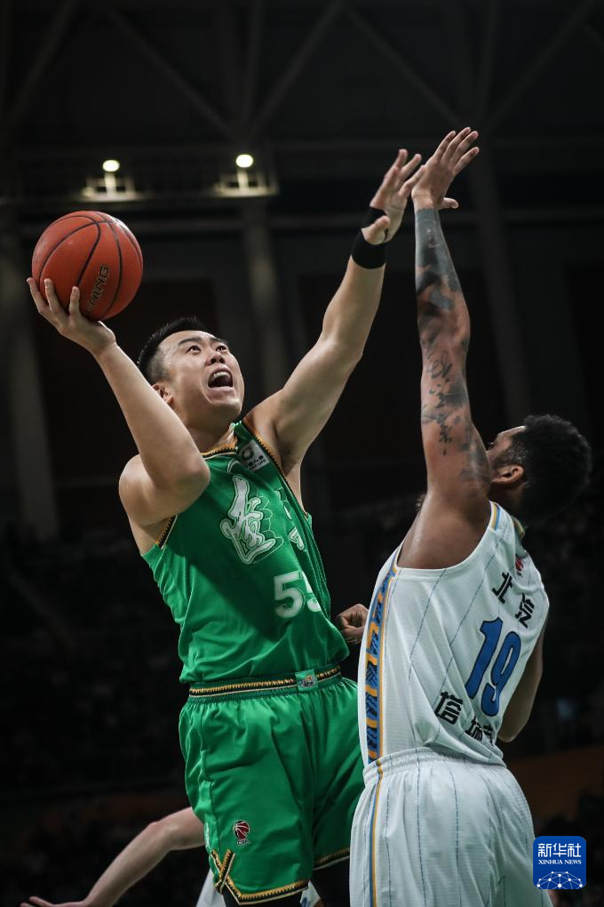 11月12日,北京北汽队球员曾凡博(右)在比赛中上篮。新华社记者 潘昱龙 摄pagebreak