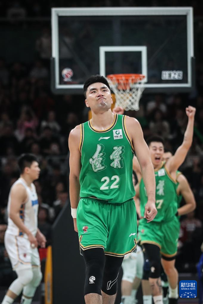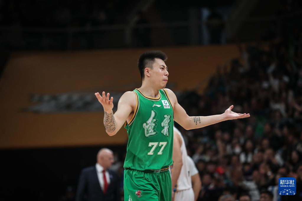 11月12日,辽宁本钢队球员张镇麟在比赛中庆祝。新华社记者 潘昱龙 摄 pagebreak