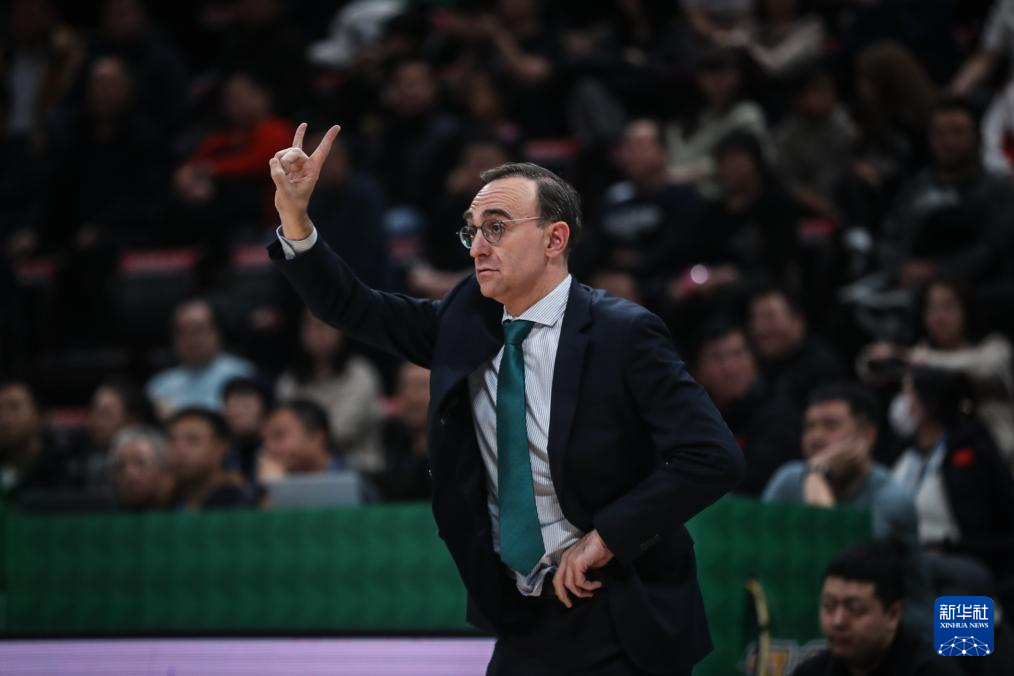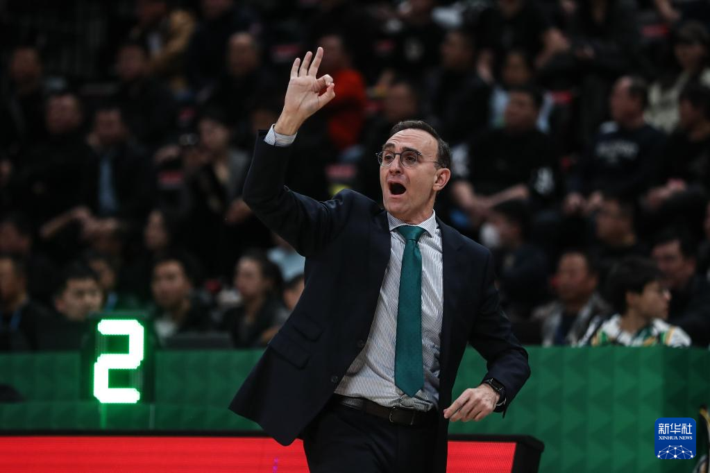 11月12日,辽宁本钢队主教练乌戈在场边指挥。新华社记者 潘昱龙 摄pagebreak